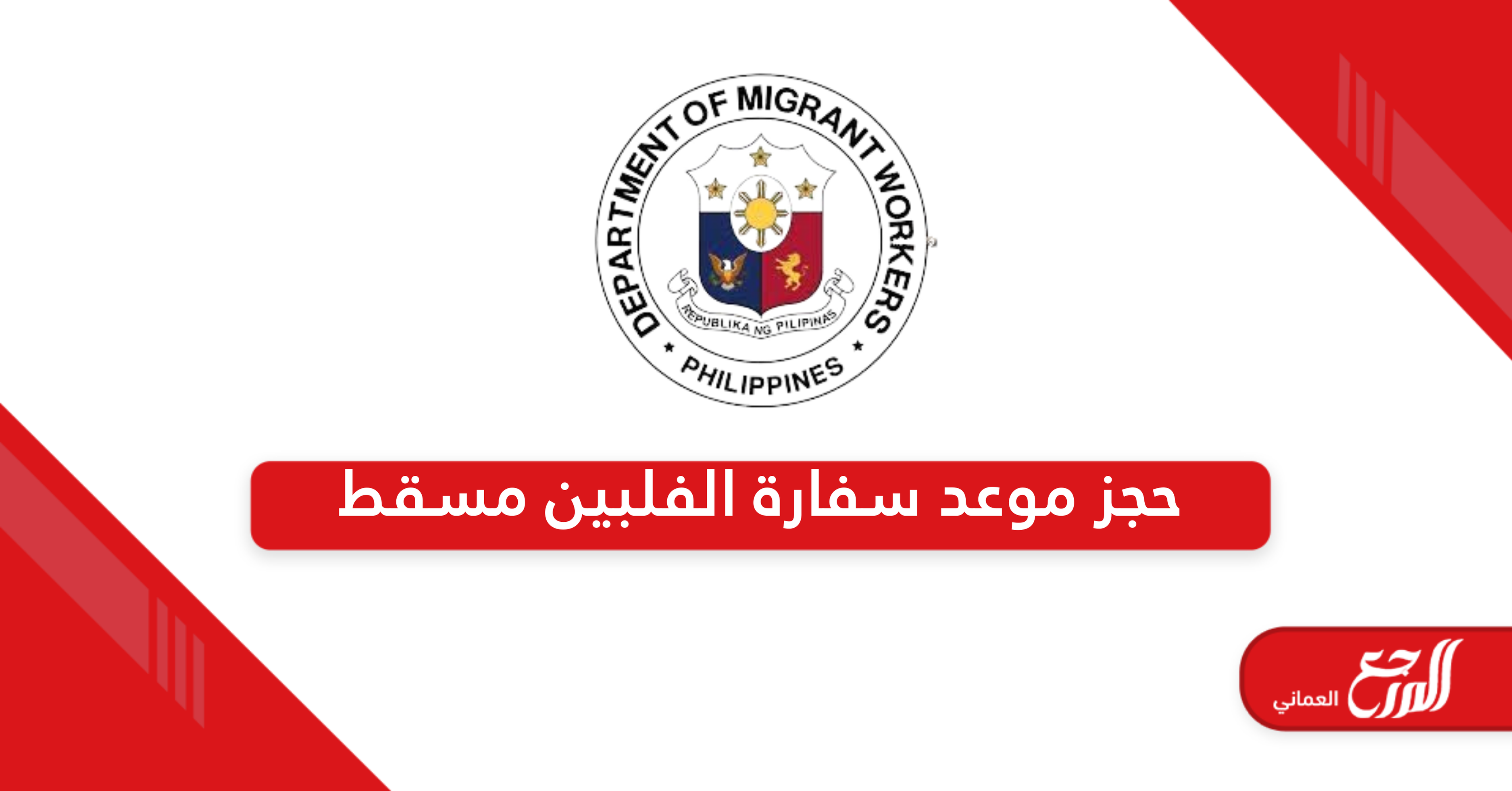 لحجز موعد في سفارة الفلبين في مسقط يتم النقر على الرّابط التالي omanplatform.net مباشرةً، ثم يتم النقر على الرّابط المرفق للدخول إلى الموقع الإلكتروني لسفارة الفلبين في عُمان ومتابعة خطوات حجز الموعد أون لاين.