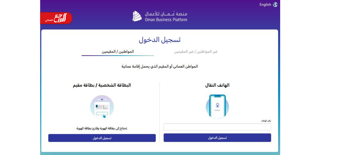 - تسجيل الدخول إلى حساب المستثمر في منصة عمان للأعمال على النحو التالي: